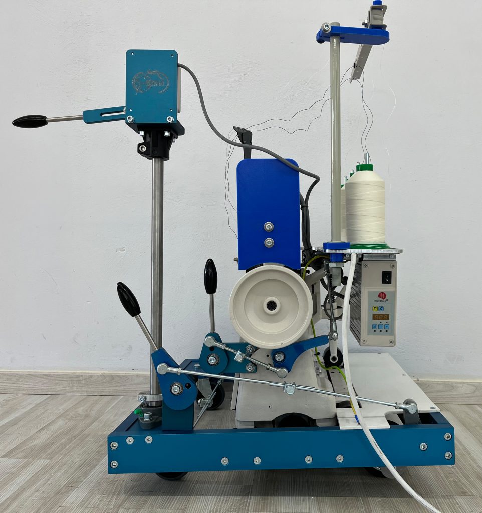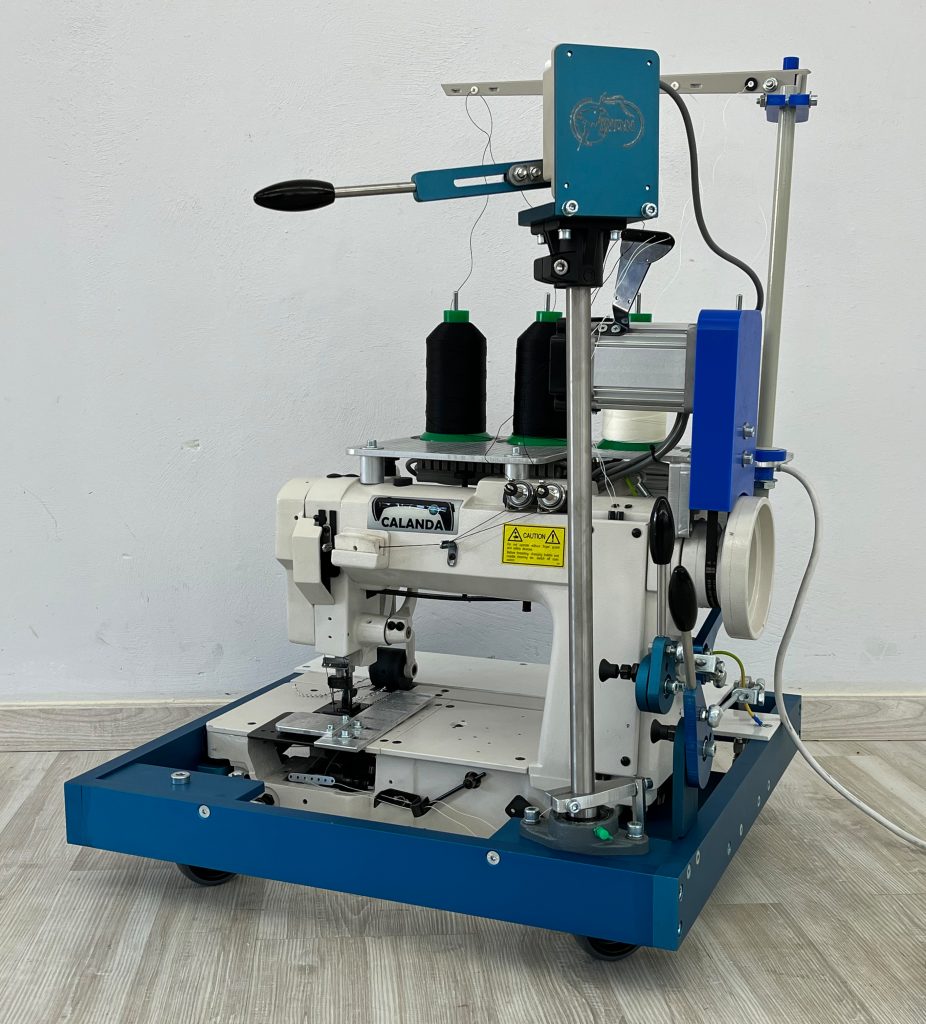 Der Calanda Nähcrawler ist eine fahrbare Nähmaschine. Durch Ihre kleine und bodennahe Bauart eignet sie sich ideal zum Vernähen von großen Textilen, die aufgrund Ihrer Größe am Boden verarbeitet werden müssen. Die Maschinegeschwindigkeit kann durch den Bediener per Hand variabel gesteuert werden. Durch ein Lenksystem ist es möglich mit der Maschine Radien zunähen.